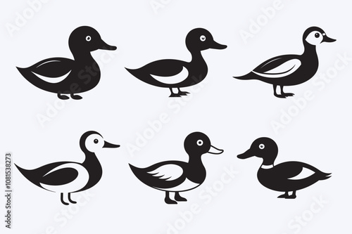 Fototapeta premium Creative 6 cute duck line art design vector silhouette with a white...