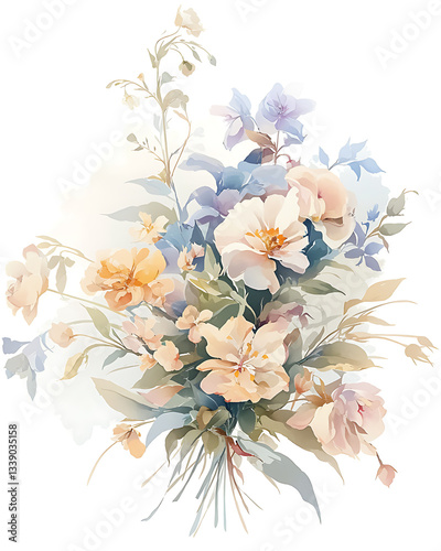 © kato, Fototapeta premium Creative 2D Doodle Floral Illustrations on White Background