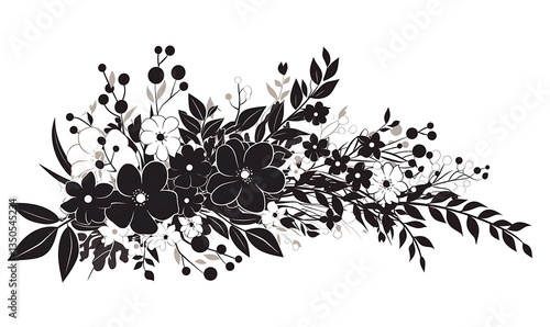 © NaLan, Naklejka premium Creative 2D Doodle Floral Illustrations on White Background