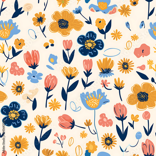 Obraz premium Creative 2D Doodle seamless pattern Floral or flower Illustrations