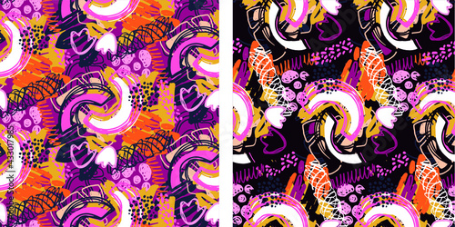© jane55, Obraz premium Creative doodle art seamless pattern with different shapes and textures. Collage. Vector