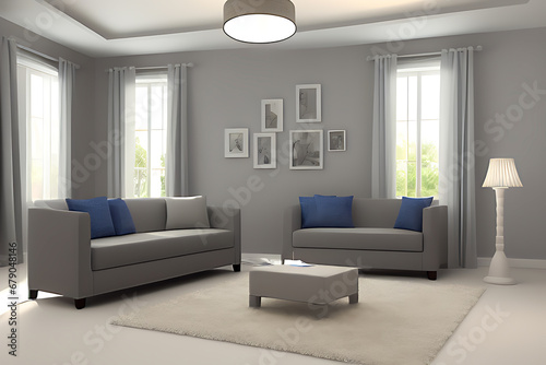 © Talhashahi, Fototapeta premium Creative Drawing Room, Wall Paint Color Primer Gray with Sofa