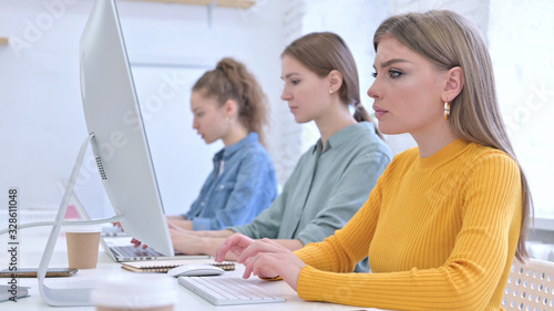 Fototapeta premium Creative Female Team Working on Desktop and Laptop