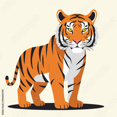 © Pvect02, Naklejka premium Creative Flat Vector Illustrations of Tiger: Minimalist, Modern, and Perfect for Pet-Themed Graphics.Charming Flat Vector Tiger Illustration: Playful, Minimal, and Versatile Cartoon Primate Design