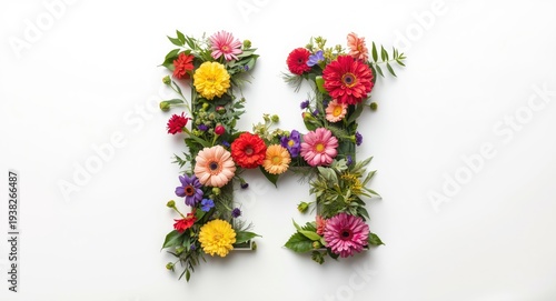 Obraz premium Creative floral letter H typography on a white backdrop highlighting vibrant...