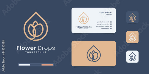 © pardiJP, Fototapeta premium Creative flower drops logo design template. healthy logo for your brand.
