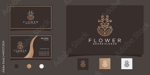 © MUCHAMAD, Fototapeta premium Creative flower logo design with unique flower line art shape and business card design premium vekto