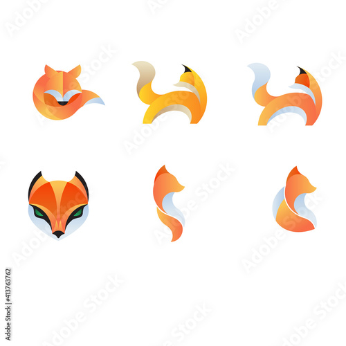 © Roman, Obraz premium Creative fox Animal Icon, logo set. Vector Illustration