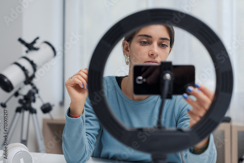 © StockPhotoPro, Obraz premium Creative girl recording a video for social media