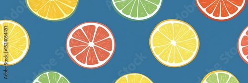 Fototapeta premium Creative graphic layout featuring colorful citrus fruit slices on a vibrant background
