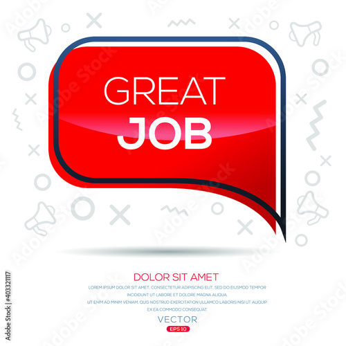 Fototapeta premium Creative (great job) text written in speech bubble ,Vector illustration.