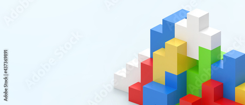 © guguart, Obraz premium Creative idea logical thinking Concept and Puzzle game with Geometric shapes on blue .website background, banner, poster-3d Rendering