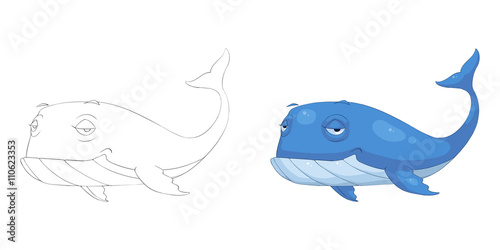 © info@nextmars.com, Naklejka premium Creative Illustration and Innovative Art: Animal Set: Sketch Line Art and Coloring Book: Blue Whale. Realistic Fantastic Cartoon Style Character Design, Wallpaper, Story Background, Card Design