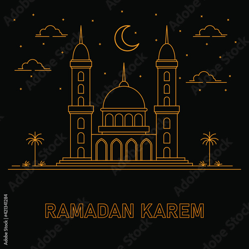 © ahmad, Obraz premium Creative illustration of a mosque in line style. isolated black background
