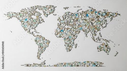Fototapeta premium Creative illustration of a world map made from recycled materials,...