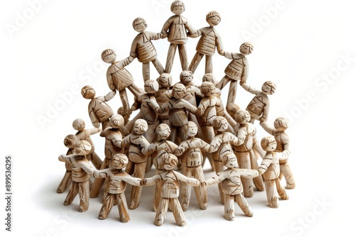 © Leo Rohmann, Obraz premium Creative image of miniature people standing on a stack of cubes representing unity and collaboration