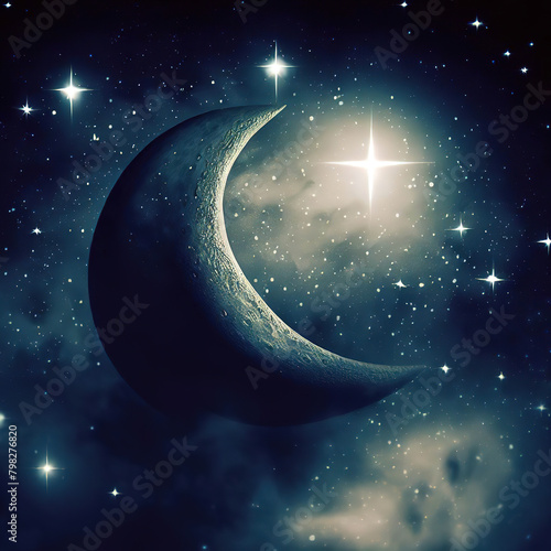 Fototapeta premium creative image of the moon in the night sky and shining stars, Ai generated