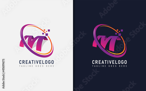 © Rtn_Studio, Obraz premium Creative Initial Letter M Digital Logo Design. Vector Logo Illustration.