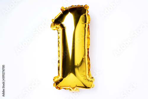 Fototapeta premium Creative layout. Golden foil balloon number and digit one 1. Birthday...