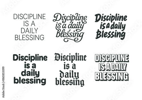 Fototapeta premium Creative Lettering Grid. Discipline is a daily blessing. Set lettering. harmonious lettering variations of the same emblematic concept (Modern minimal monoline