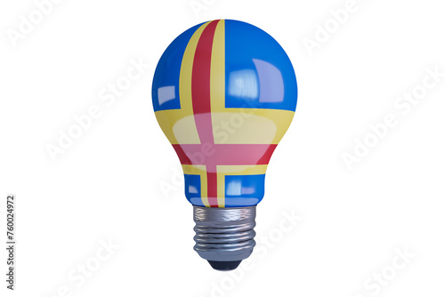 © juanjo, Obraz premium Creative Lightbulb with Colorful Aland Islands Flag Design Isolated on Black