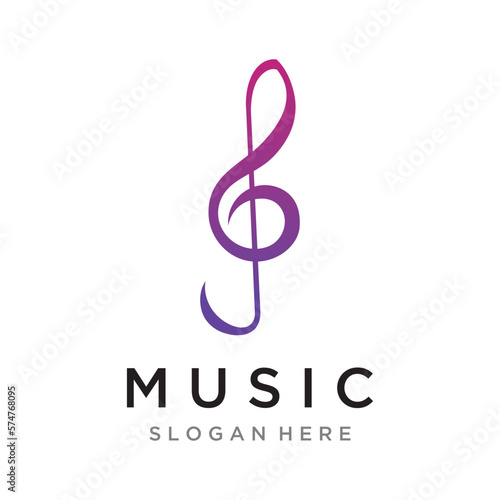 © Mujiyono, Naklejka premium Creative musical note logo template abstract design for vocal , music , course, choir, singer ,education , concert.