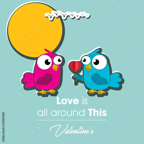 Obraz premium Creative of love valentines day concept. Love birds couple background....
