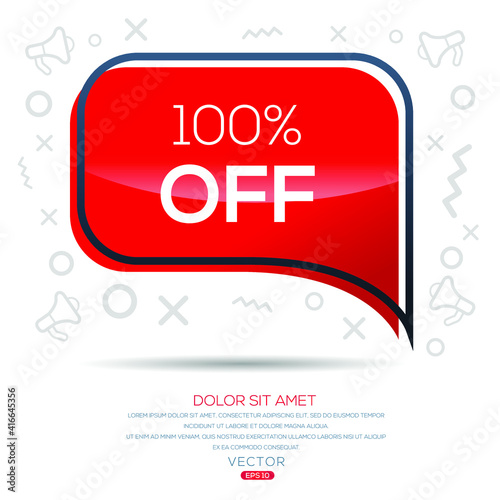 © khaled, Fototapeta premium Creative (100% Off) text written in speech bubble ,Vector illustration.