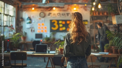 Naklejka premium Creative Office Environment: Woman in Modern Workspace