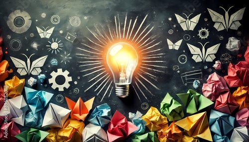 Obraz premium Creative Origami and Light Bulb: Inspiring Ideas and Innovation through Art...