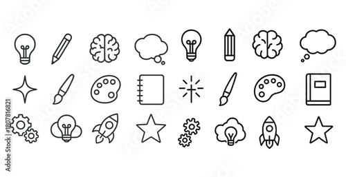 Naklejka premium Creative outline icons: art, ideas, tools, and innovation