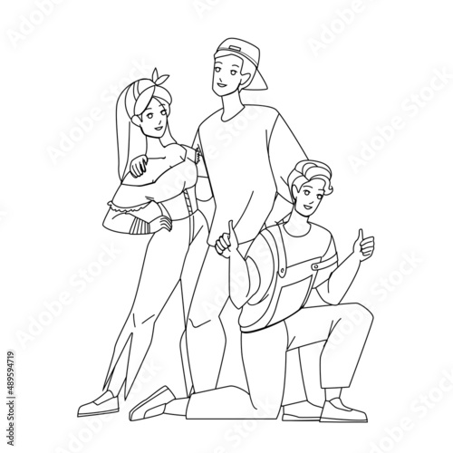 Fototapeta premium creative people man woman group. Black Line Pencil Drawing Vector. work...