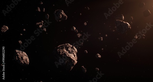 Fototapeta premium Creative portrayal of asteroids shining in solar light
