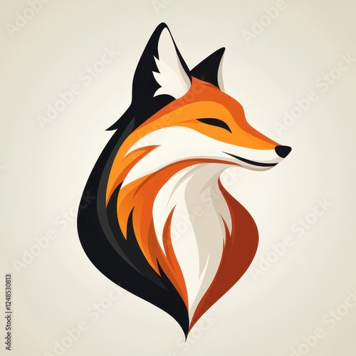 © Blackmint Studio, Fototapeta premium Creative representation of a fox featuring vibrant orange and black colors in a modern minimalist style