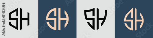 Obraz premium Creative simple Initial Letters SH Logo Designs Bundle.