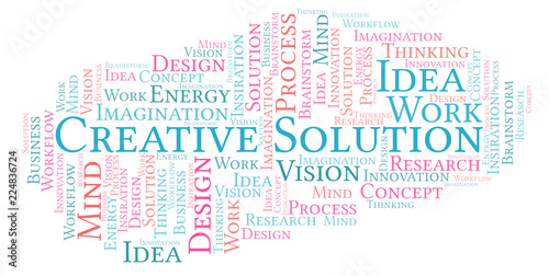 © sharafmaksumov, Obraz premium Creative Solution word cloud, made with text only.