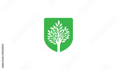 Naklejka premium Creative Vector Illustration Logo Design. Shield Protection Growth Tree Leaf Leaves Concept. Go Green