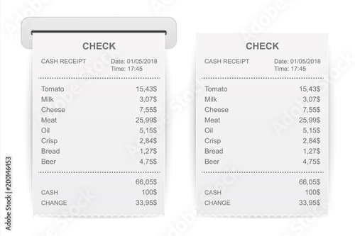 © happyvector071, Fototapeta premium Creative vector illustration of sales printed receipt. Art design bill atm check. Abstract concept graphic financial element. Isolated on background mockup document list