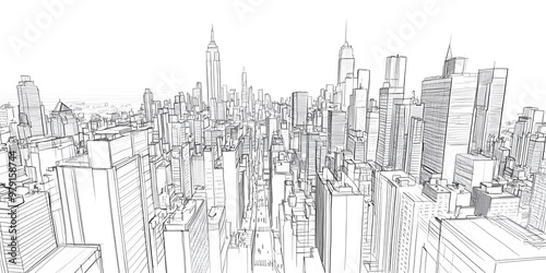 Obraz premium Creative Wireframe Drawing of Live Abstract High Skyscrapers Exterior for Innovative Architectural Design and Urban Visualization