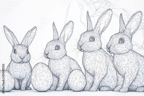 © Khalida, Obraz premium Creative wireframe line art of Easter bunnies on white.