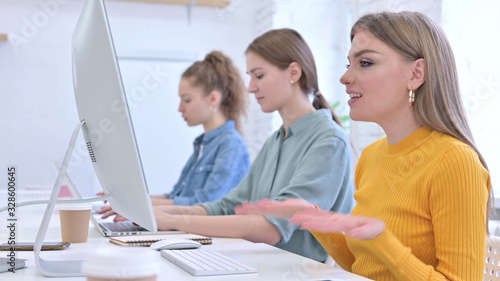 © stockbakers, Fototapeta premium Creative Woman doing Video Chat on Desktop