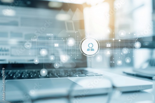 © Achirawee, Fototapeta premium Creative workspace featuring an SEO graph, emphasizing content creation in digital marketing