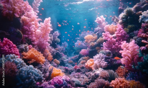 Naklejka premium Creatures of the submerged ocean world Biological system Colorful tropical angle Life within the coral reef