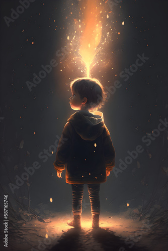Fototapeta premium Credible_boy_child_illustration_focus_care_simple_rigid_