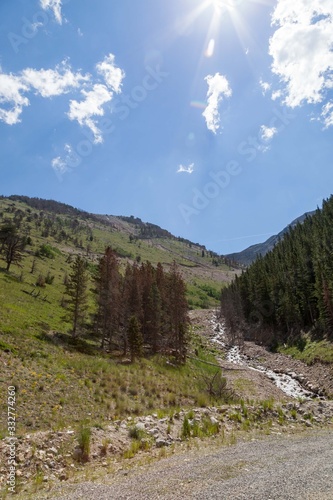 © tamifreed, Obraz premium Creek by a Forest with Sun Rays