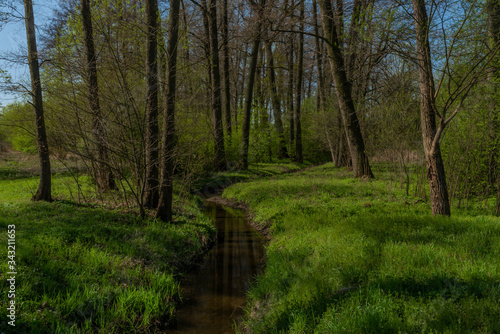 Obraz premium Creek near Blanice river in spring forest in south Bohemia