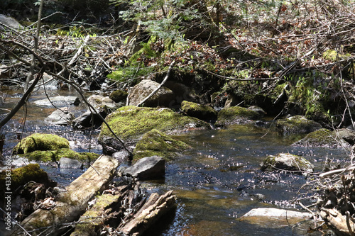 © Janet, Fototapeta premium Creek with mossy stones in Algonquin Park in spring sunshine