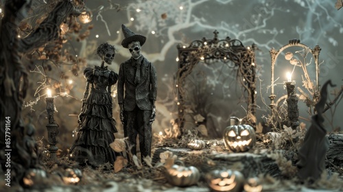 © Cloudyew, Fototapeta premium Creepy Halloween Figures in Glamorous Lighting