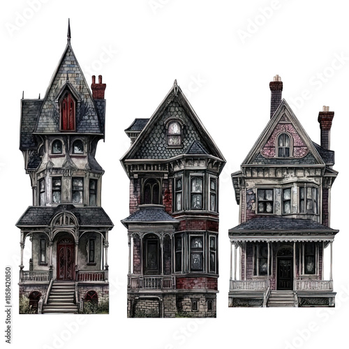 Naklejka premium Creepy Victorian houses with spooky atmosphere
