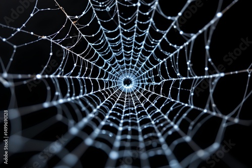 © CRISPIFLY, Naklejka premium creepy white cobweb on black background closeup, with subject at the top and pure white tones.